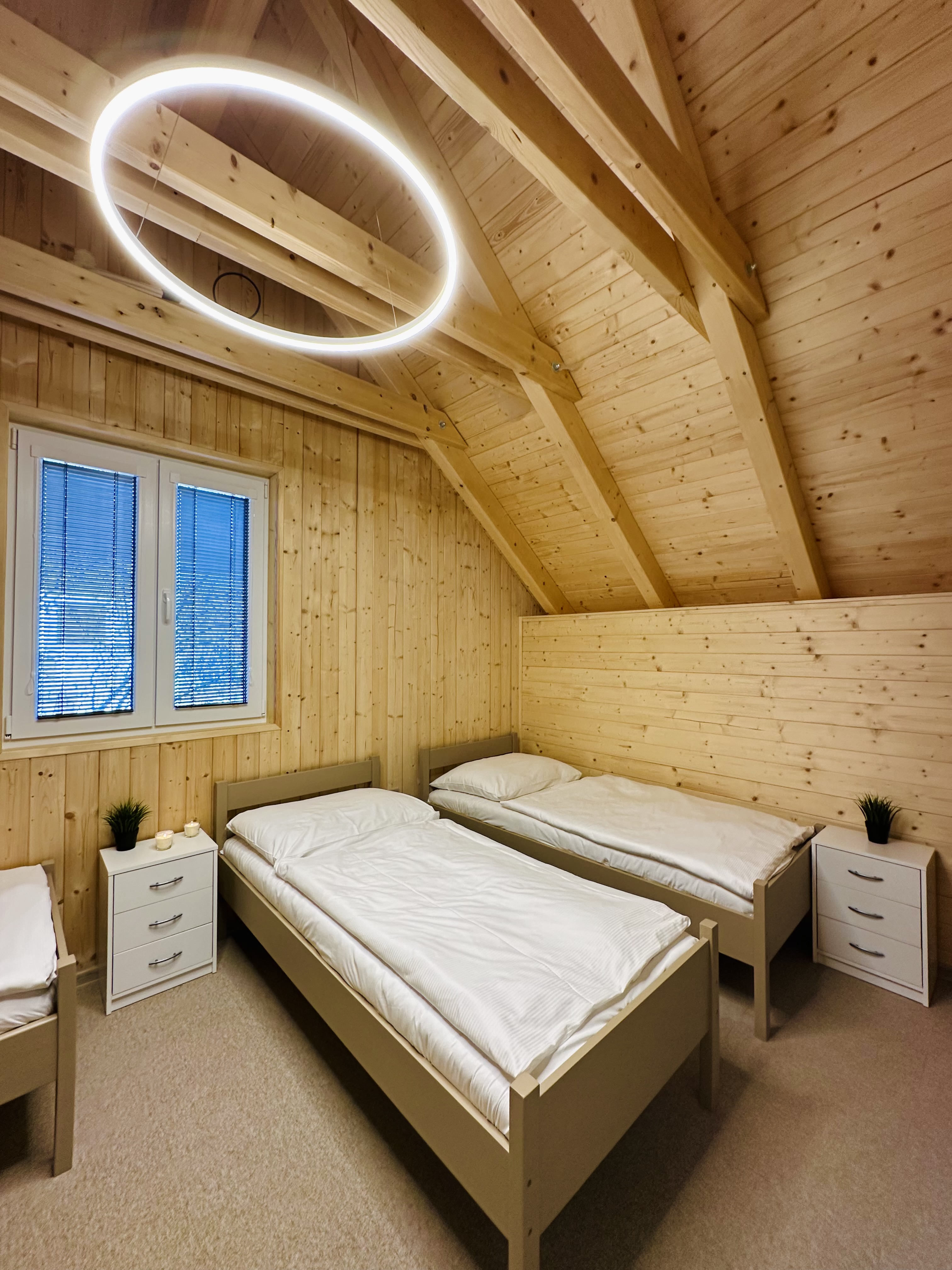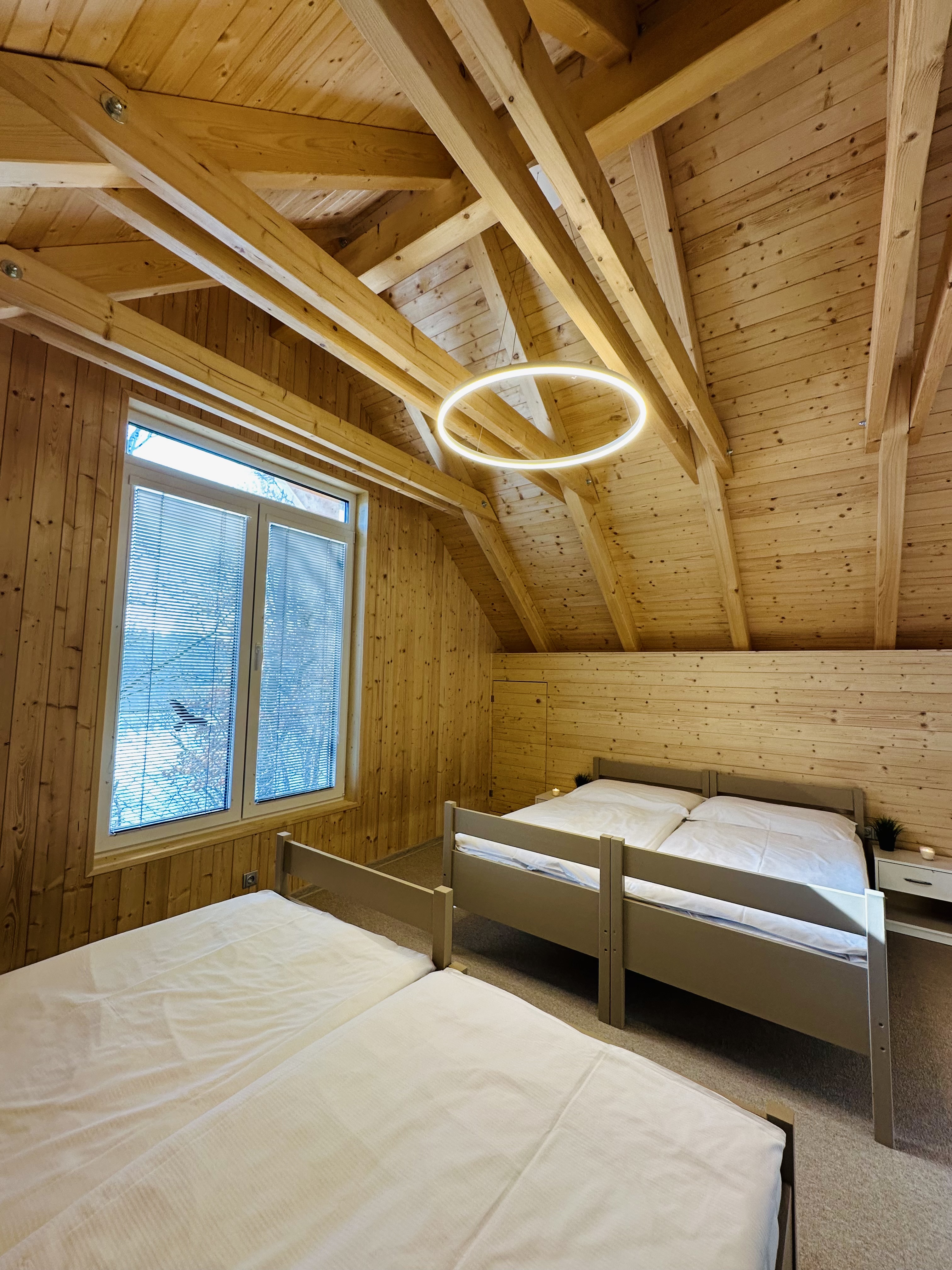 - 2x ložnice pro 7 osob, noční stolky a vestavěné skříně